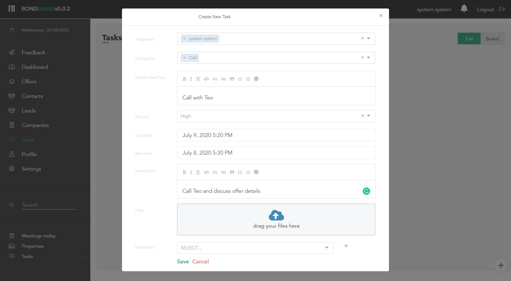 Создание задачи